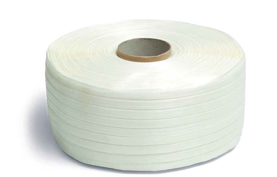Das PET-Textil-Umreifungsband Standard 900 ist ein weißes, geklebtes Umreifungsband aus verleimten Polyesterfäden und eine hervorragende Alternative zu Stahlband. Es ist extrem reißfest, anschmiegsam und oberflächenschonend – perfekt für den sicheren Transport und die Lagerung von empfindlichen oder unregelmäßig geformten Packgütern.