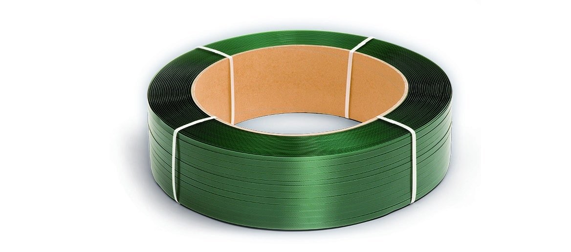 Das PET-Umreifungsband 910 ist ein hochfestes, grünes Polyesterband, das speziell für Anwendungen mit hohen Belastungen entwickelt wurde. Es bietet eine ideale Kombination aus hoher Reißfestigkeit und ca. 12 % Dehnung, wodurch es auch bei stoßbelasteten Transporten für zuverlässige Sicherung sorgt.