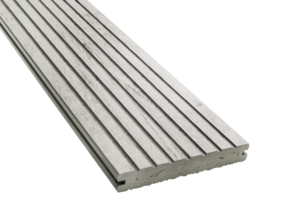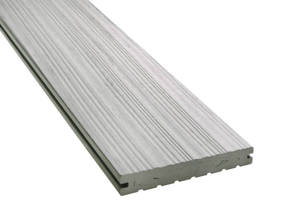 Die elegante graue Oberfläche schafft eine moderne, stilvolle Optik, die sich in nahezu jedes Bauprojekt einfügt. Durch die gebürstete Struktur entsteht ein edler Look, der zusätzlich für Rutschfestigkeit sorgt und die Dielen besonders angenehm barfuß nutzbar macht.