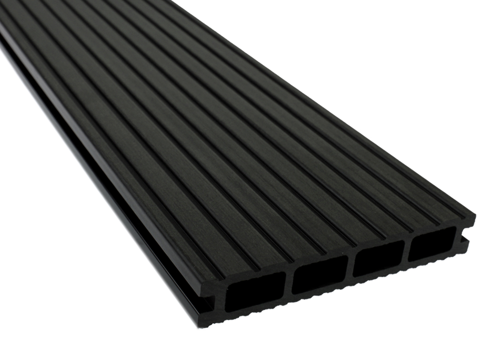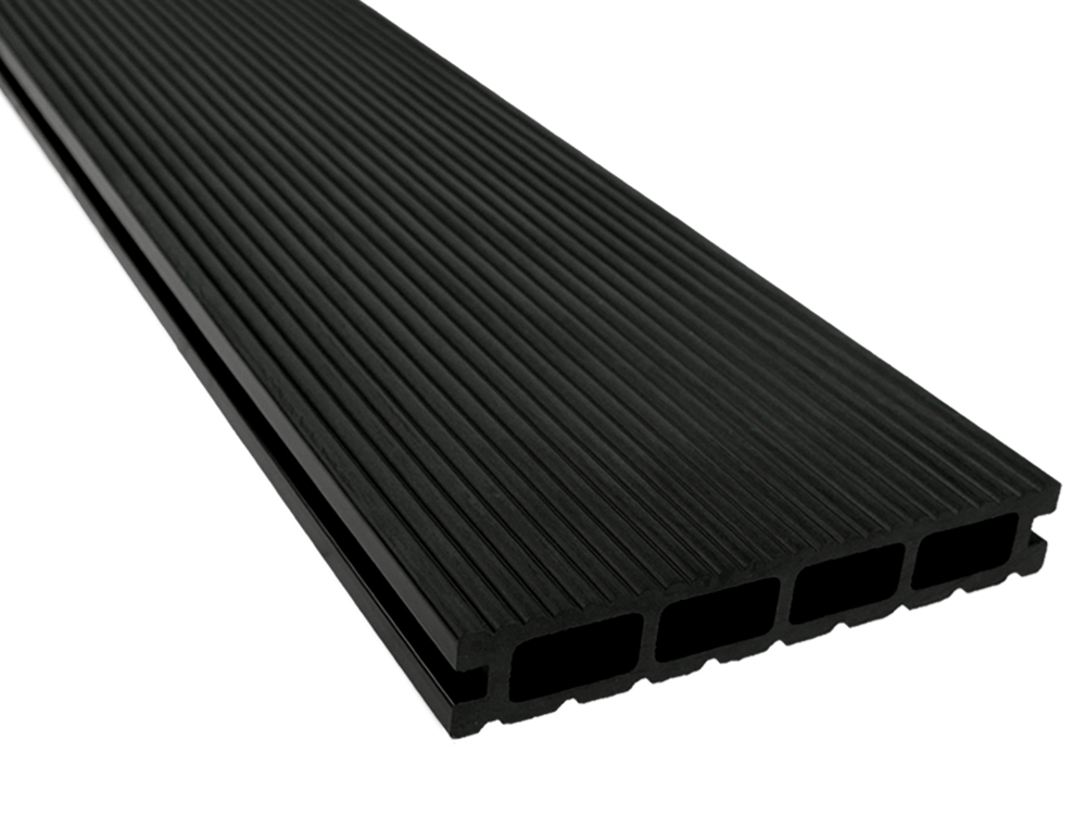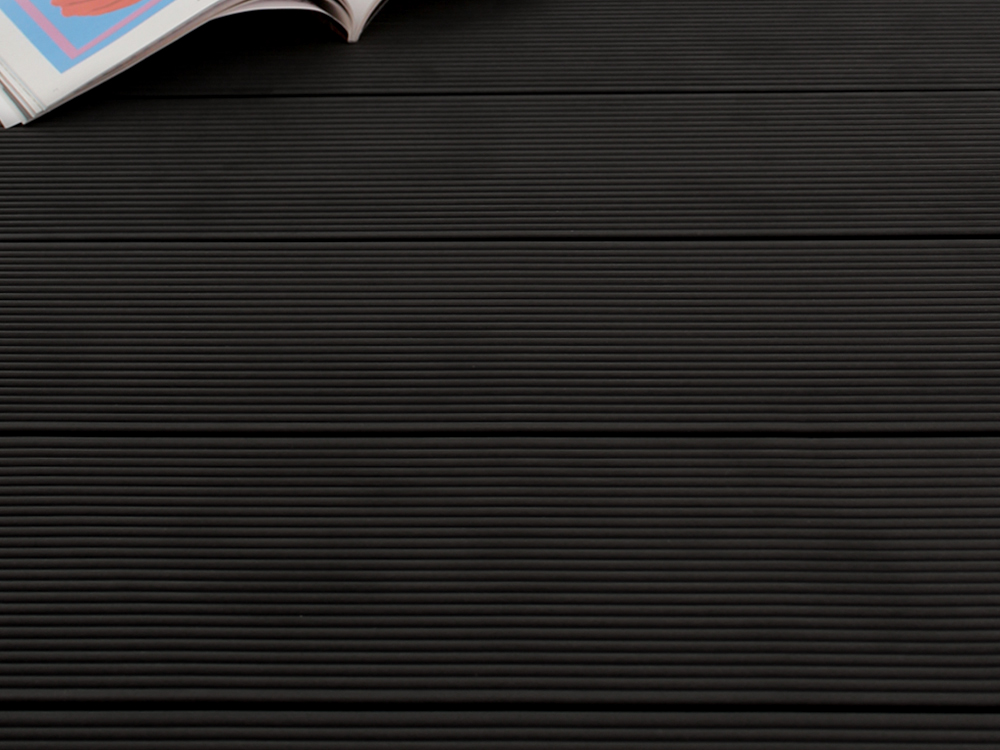 Die elegante anthrazitfarbene Oberfläche schafft eine moderne, stilvolle Optik, die sich in nahezu jedes Bauprojekt einfügt. Durch die gebürstete Struktur entsteht ein edler Look, der zusätzlich für Rutschfestigkeit sorgt und die Dielen besonders angenehm barfuß nutzbar macht.